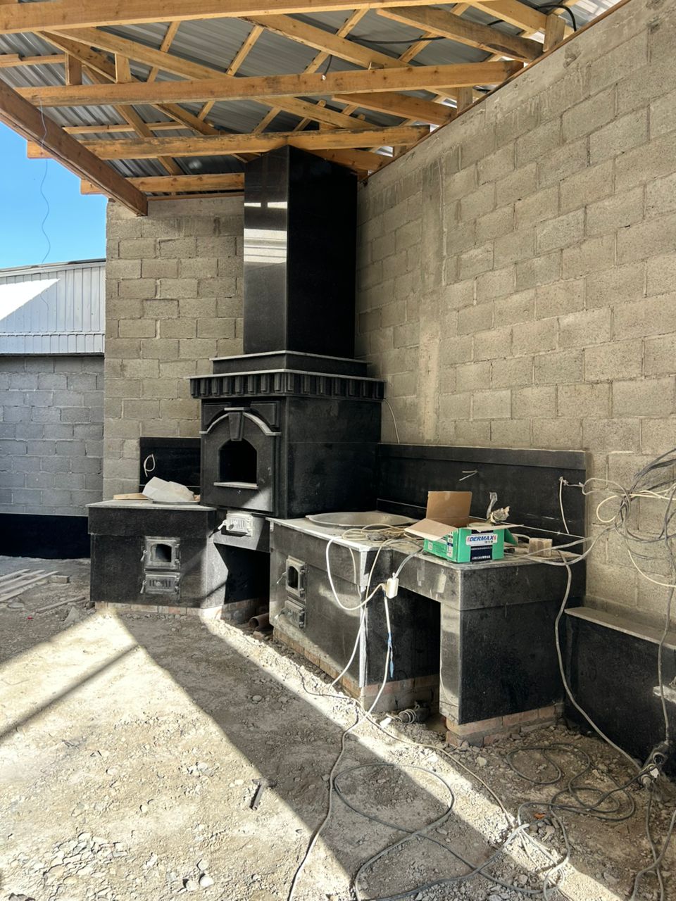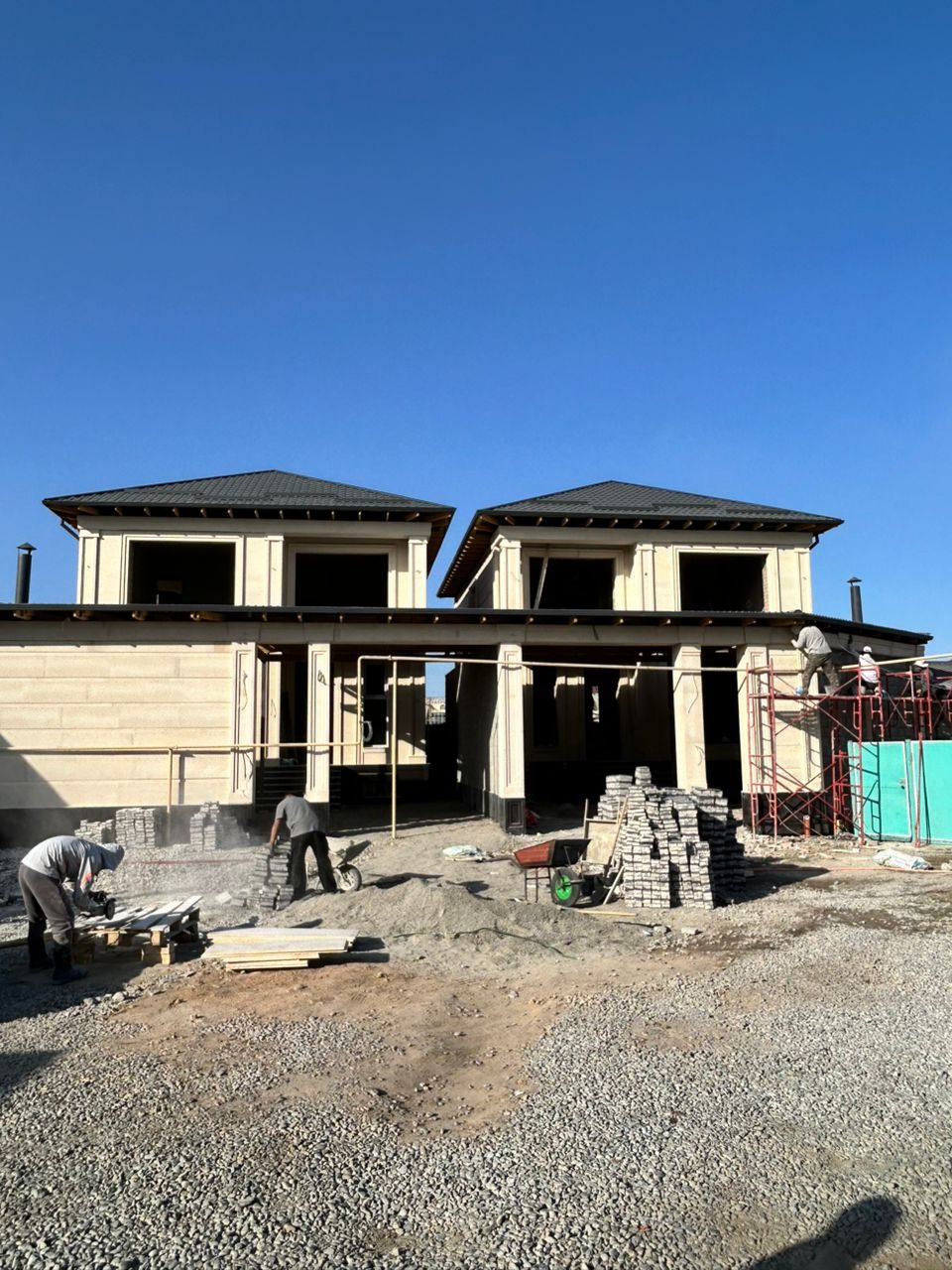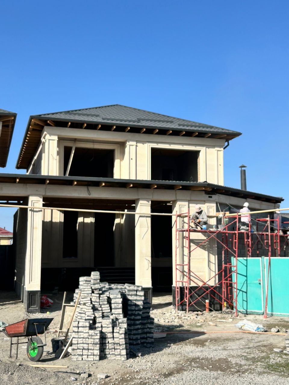 ✅ Фасад — Сары таш и чёрный мрамор, базальтовое утепление