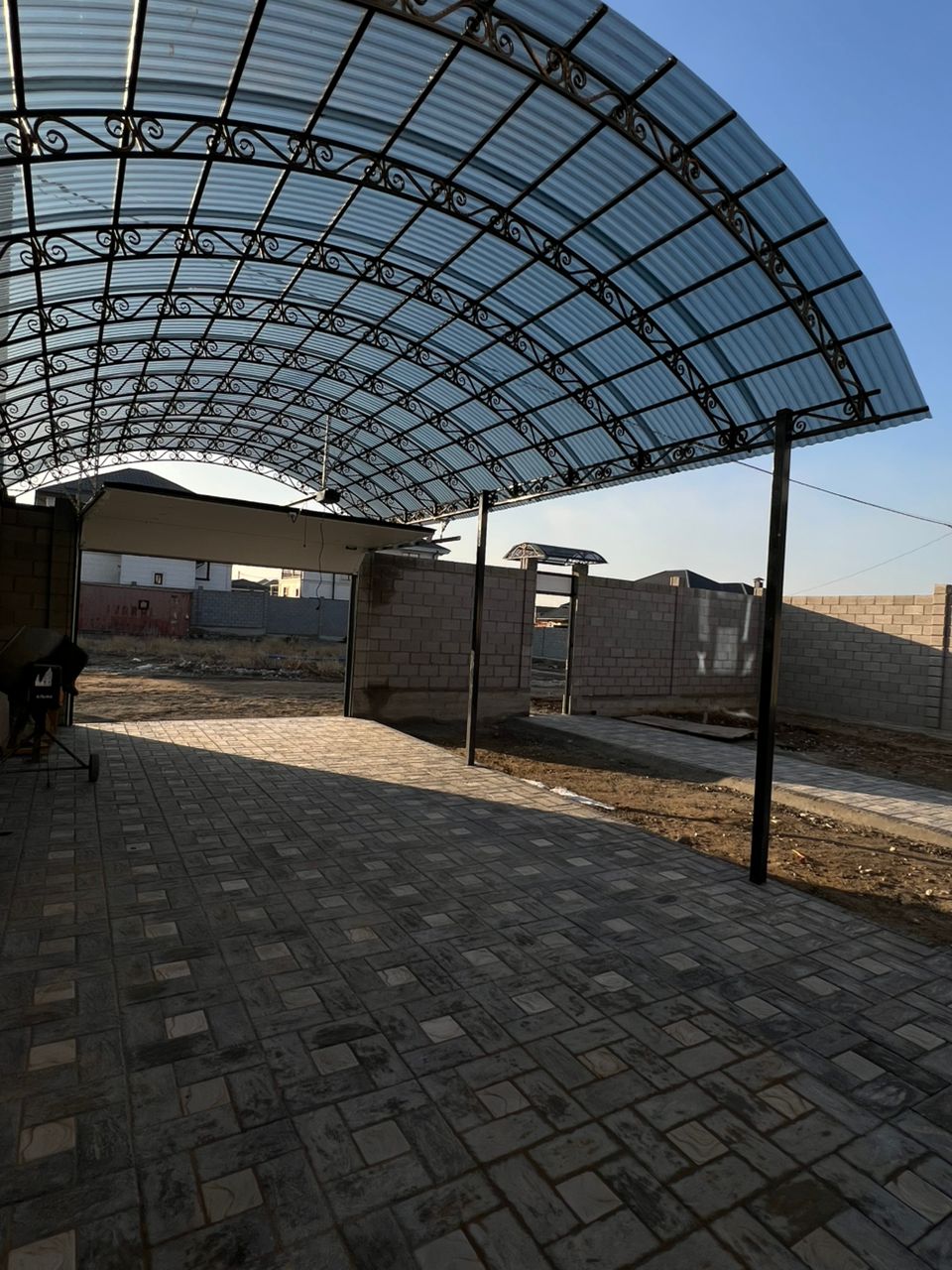 Имеются: навес, забор, ворота — всё установлено!