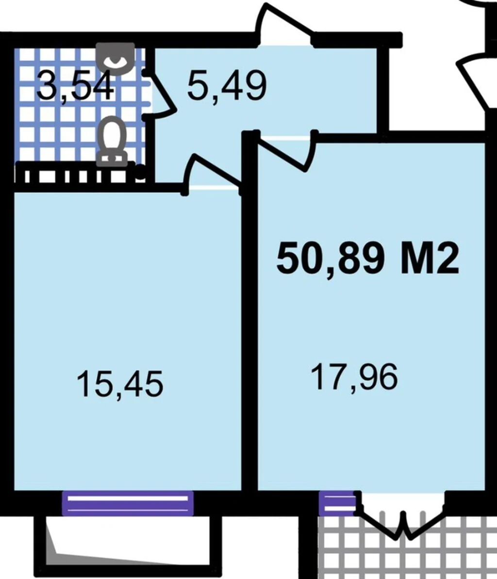 - Общая площадь — 50,89 м²