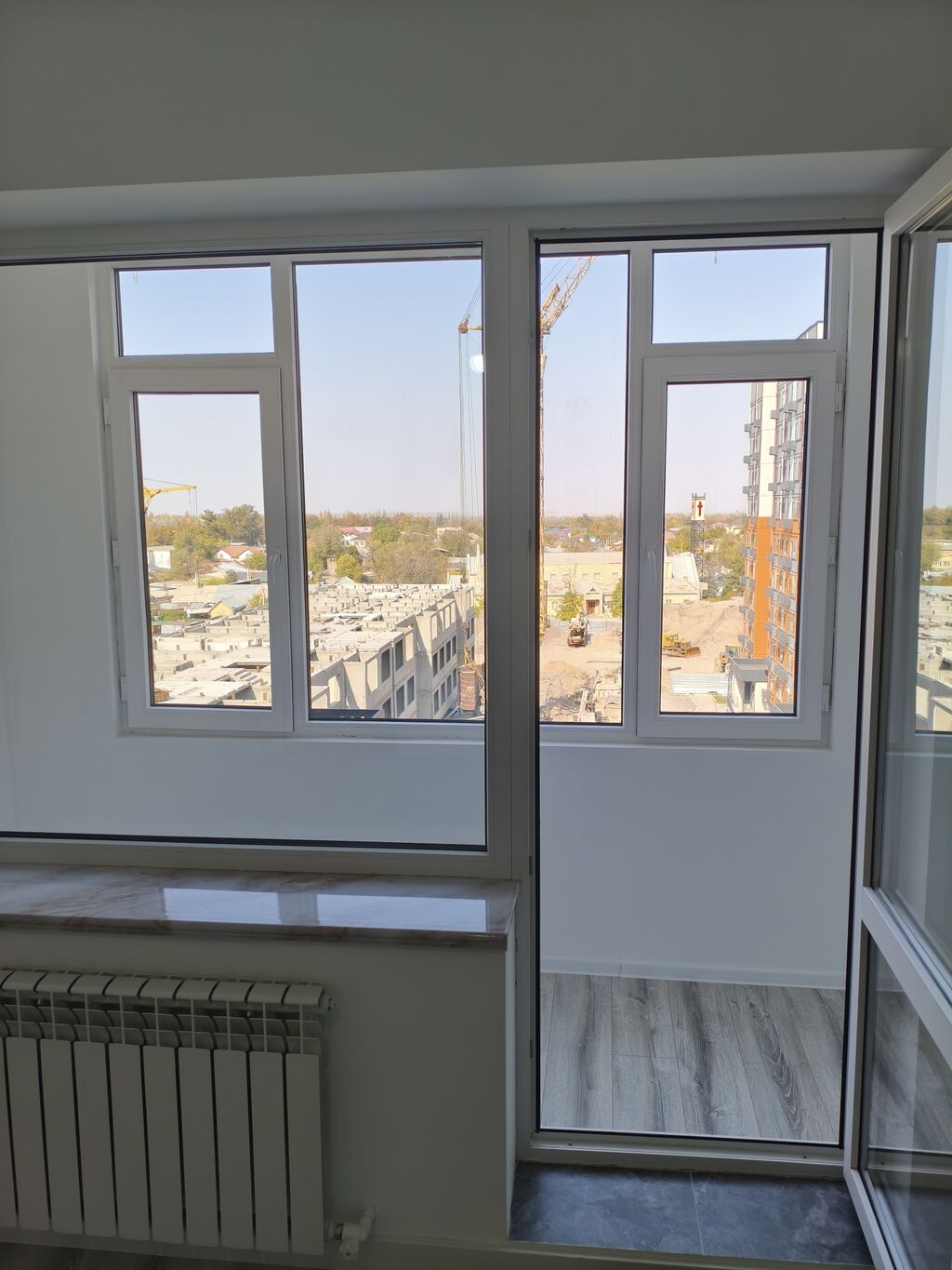 ПВХ-окна, широкий подоконник, вид во двор и на город