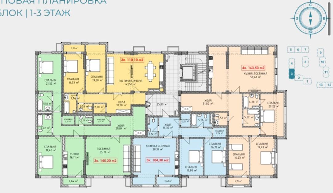 Этаж 3/4 3блок