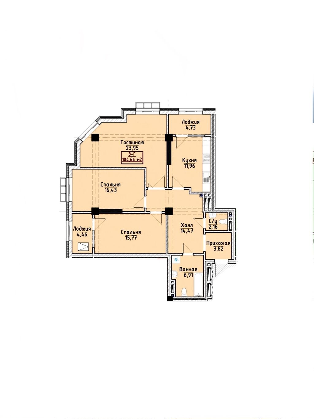 Продаю 3-к. 104м2. в ЖК КапСтройСити.