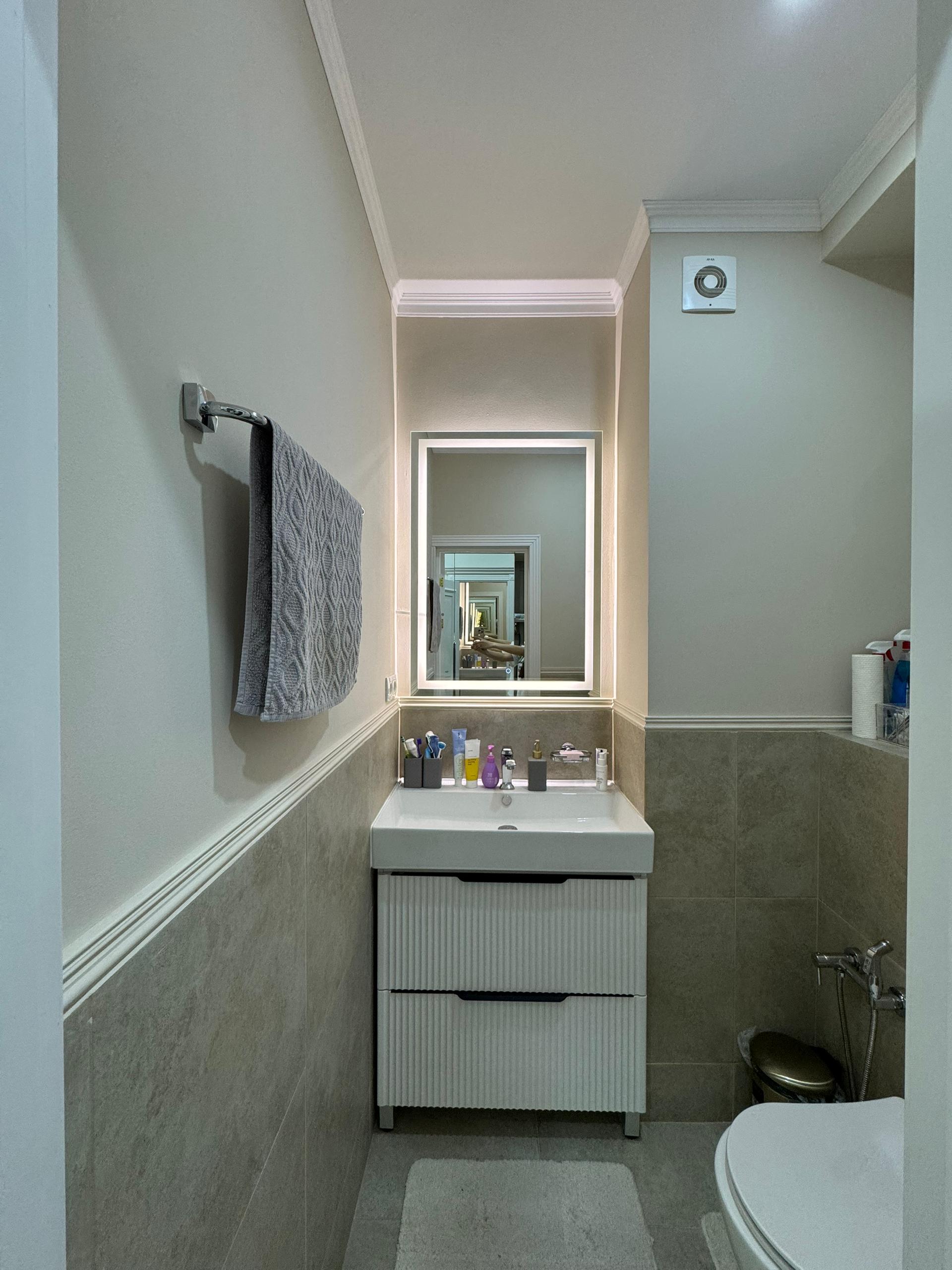 Установлена вся техника. По всей квартире теплые полы.