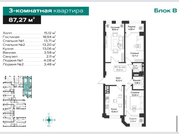 📐 Площадь: 87,27 м²