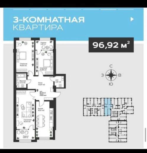 Продается 3-комнатная квартира в ЖК «Санхаус-2»