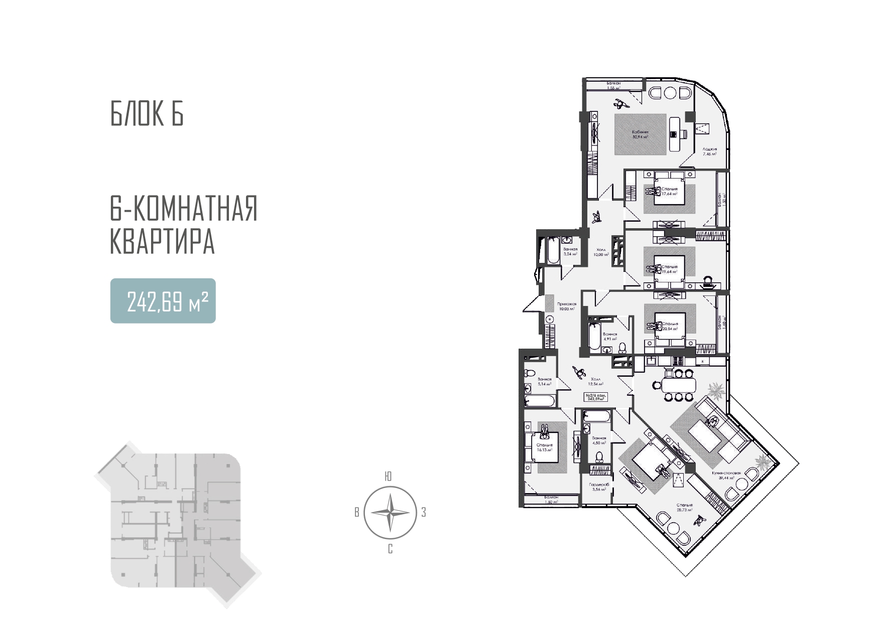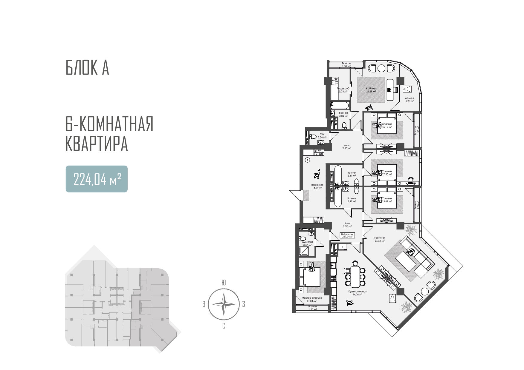 Комнат: 6