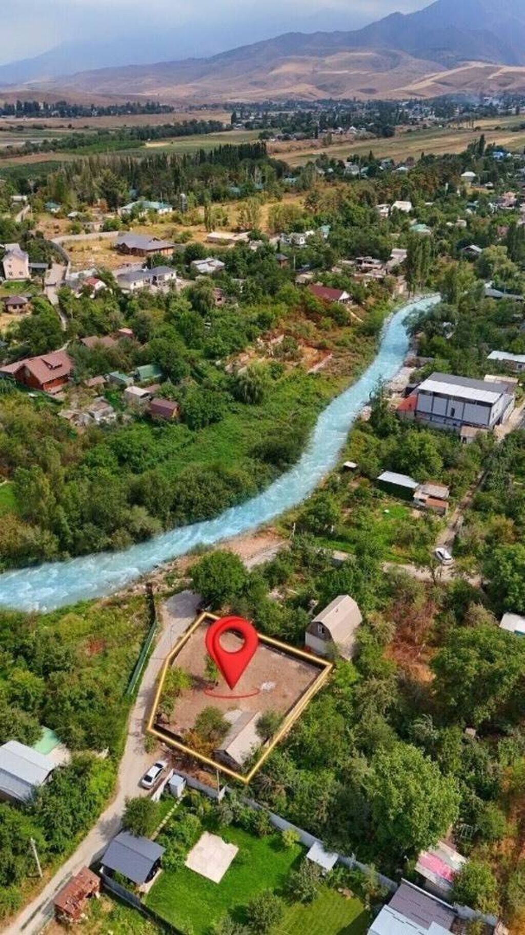 Прекрасный участок площадью 6 соток 📕 в живописной локации — рядом речка, панорамный вид на горы, свежий воздух и шум воды создают атмосферу уюта и уединения.