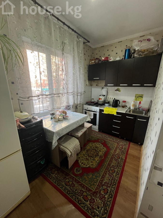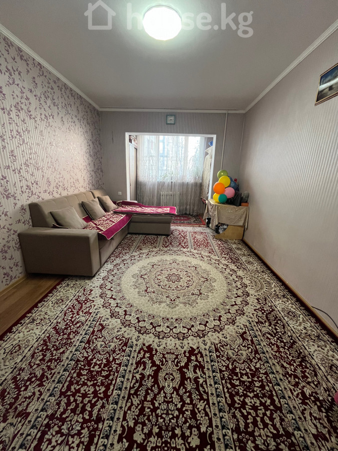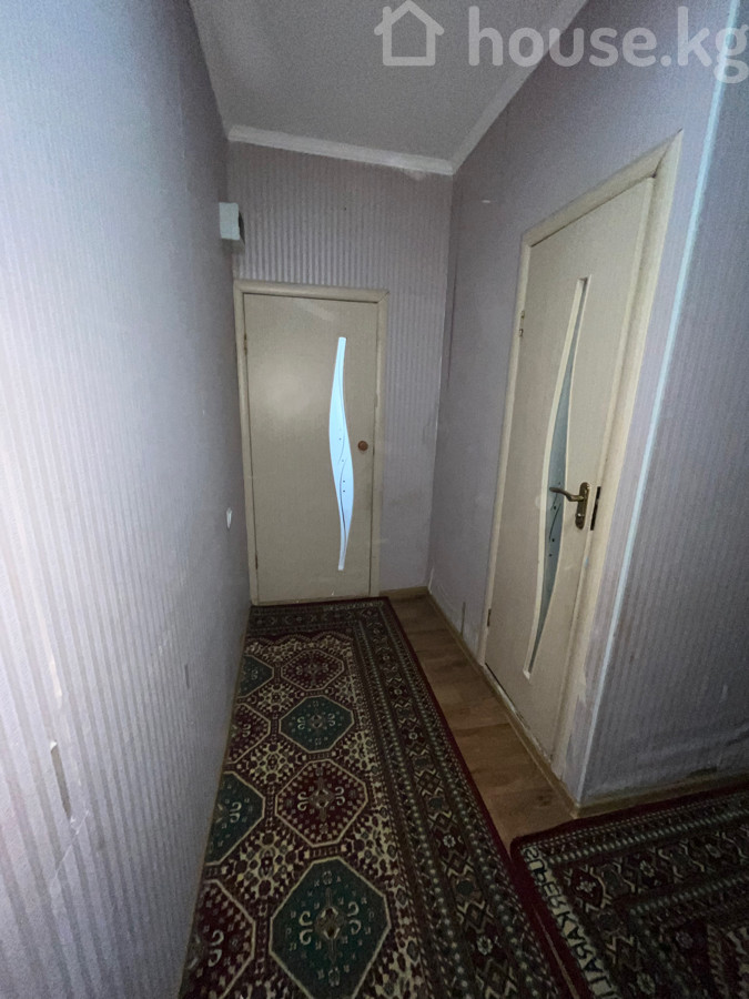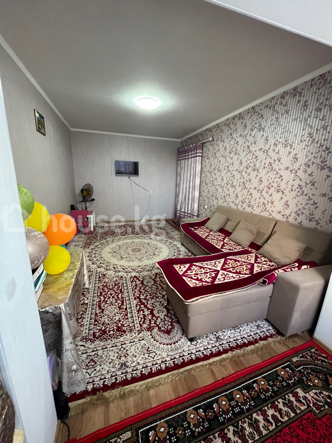 Просторная 1‑комнатная квартира. - Большая гостиная с ортогональной планировкой: место для дивана‑уголка, ТВ‑зоны и отдельной ниши под рабочее/детское пространство у окна. Светлый потолок с центральным светильником, комбинированные обои, широкий плинтус. На полу линолеум , сверху — крупный классический ковер. - Кухня отделена, с окном: гарнитур с верхними и нижними шкафами, мойка, газовая плита с духовым шкафом, холодильник. Установлен обеденный стол с табуретами, на полу — ковер-дорожка. - Окна с подоконниками и радиаторами отопления, межкомнатные проемы расширены. Полы ровные - Декор: классические ковры, тюлевые шторы, настенные часы, настенное крепление для ТВ. Квартира готова к проживанию: функциональная кухня, оборудованная гостиная, достаточное количество мест для хранения и сидения, много света и уюта. Подходит для семьи или пары, ценящих просторную комнату и отдельную кухню. Квартира находится в районе Джал. Рядом находятся вся нужная инфраструктура для комфортного жилья