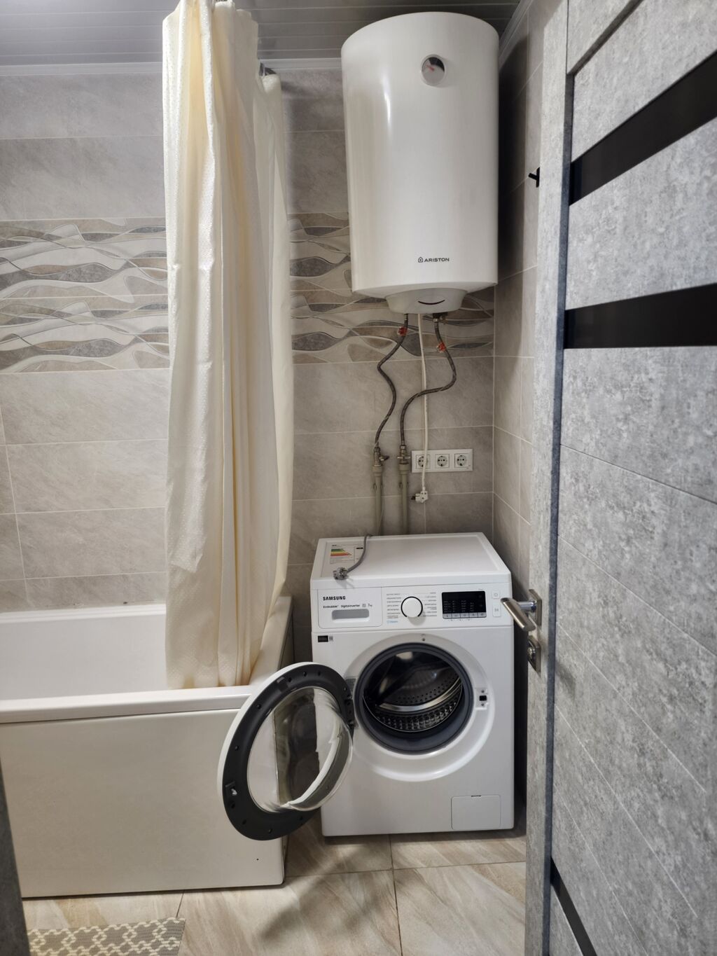 Установлены: кондиционер, стиральная машина, микроволновка, телевизор, пылесос, утюг и мелкая техника