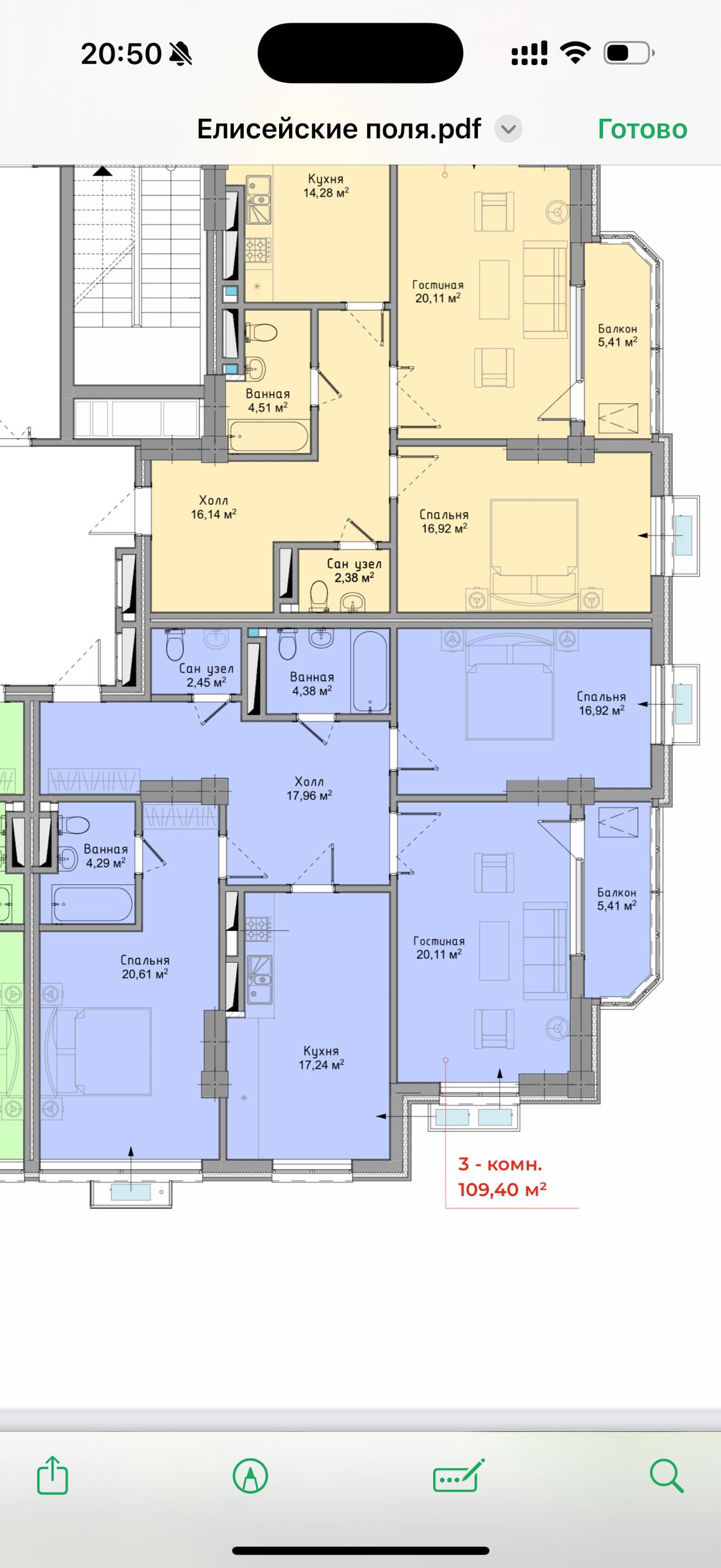 Продаётся 3-комнатная квартира в ЖК «Елисейские поля» от СК «Авангард»